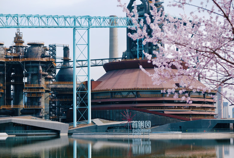 Here, the rigid lines of steel form a striking contrast with the soft beauty of spring flowers. At locations like Gongbei Pavilion, pink Chinese wild peach blossoms stand against the backdrop of towering industrial heritage sites — blast furnaces, cooling towers, and the Big Air Shougang — creating a spectacular scene.
