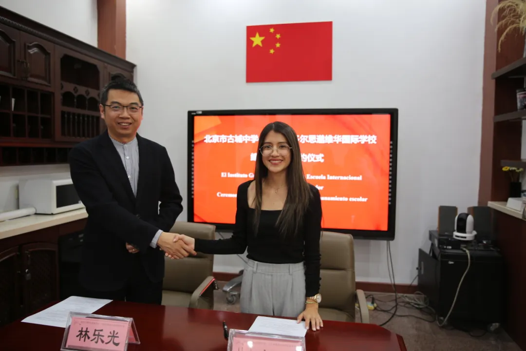 Recently, Ms. Ambar Amparo Basantes Quishpe, the Vice Principal of Si Miao Wei Hua International School in Ecuador, led a delegation of teachers and students to visit Beijing Gucheng Middle School and signed a sister school agreement with the school.
