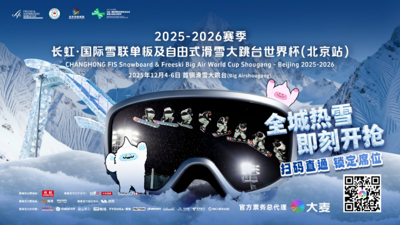 As a qualification event for the 2026 Winter Olympics in Milan and Cortina d'Ampezzo of Italy, the Changhong FIS Snowboard & Freeski Big Air World Cup - Beijing 2025-2026 will take place at the Big Air Shougang from December 4 to 6, offering audiences a world-class winter sports spectacle. The tickets will go on sale shortly, available via the official apps and mini-programs of Damai and Piaoxingqiu.