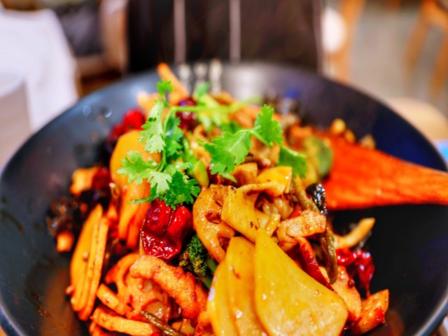 Fengguang Laozao Spicy Pot is in the Beijing Modern Plaza. The restaurant ranks first for Sichuan cuisine in Shijingshan District. The restaurant's signature dishes are spicy pot and dry pot duck head. Don't forget to order a fried crispy sausage and a bottle of hawthorn juice to make your meal even tastier.